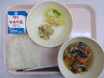 五目うどん(白玉うどん)、しんこあえ、鬼まんじゅう、牛乳