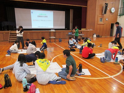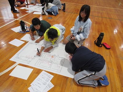 災害発生時には、まず自分で身を守り、そして助け合うことが必要となります。自分たちが進んで、周りの人と協力しながら避難所運営に携わっていこうとする意識が高まったようです。普段から「自助」・「共助」を意識して日頃から災害に備えておきたいですね。講師の方からの「日頃から心とことばを大切に」との言葉が心に残りました。