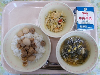 ルーロー飯 牛乳 ビーフン炒め 韓国風わかめスープ