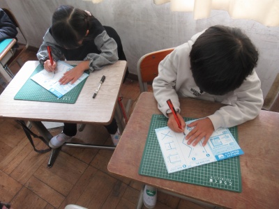 前回、カッターナイフの使い方、扱い方を学び、今回は切る学習をしました。