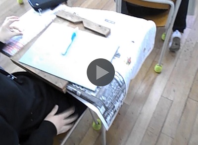 6年生の子どもたちが図工の時間に版画の制作に取り組んでいました。