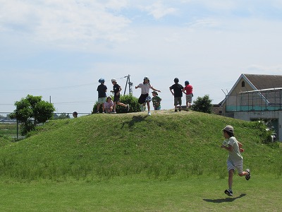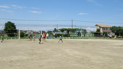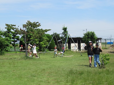 雨降りあと、やっと運動場も乾き、さわやかな天気のもと、子どもたちは元気に運動場に飛び出していきました。低学年に人気のブランコはいつも順番待ちです。小高い「グリーンマウンテン(グリマ)」も人気の遊び場所です。おにごっこ、サッカー、タイヤ飛びじゃんけんなど仲間と楽しく元気に過ごしています。