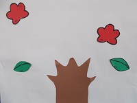 11月29日~12月10日の期間で友達のいいこと見つけをして花びらの画用紙に書いていき、写真左の「えがおの木」に貼っていきます。