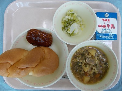 今日は、パンが主食で洋風献立です。