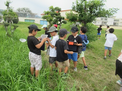 今日は、秋の生き物として校庭を探しました。『バッタ』がたくさん見つけられましたが、子どもたちは、ショウリョウバッタ、トノサマバッタ、イナゴと種類についても見分けてしっかりと観察していました(音は聞こえても、スズムシは見つけられませんでしたね)。