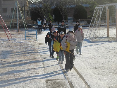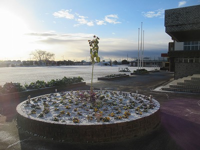 今朝は一段と寒く、そしてうっすら一面白い中の登校でした。