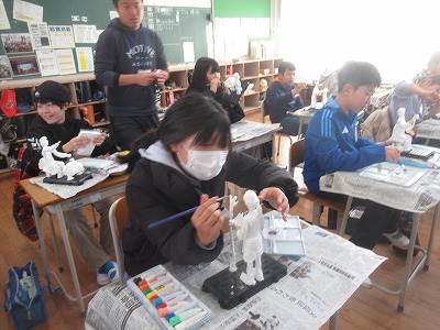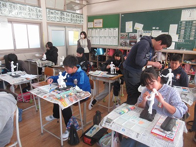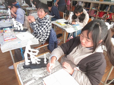 自分の思い描く『未来のわたし』が創作のテーマです。針金で芯を形作り、紙粘土で人間の肉付きをつけていき、今回は色塗りの作業に入りました。それぞれの将来の職業やなりたいわたしに向けて、今を積み重ねて頑張ってください!応援しています♪
