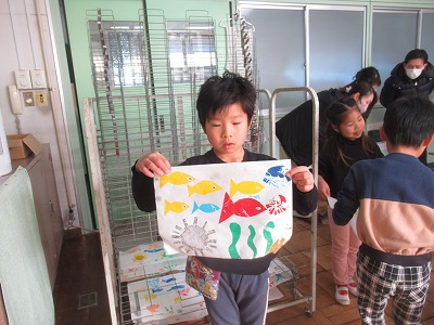 1年生は「シール版画」に取り組んでいます。今日は印刷をしました!