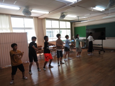 応援団の6年生がダンスの振り付けを一生懸命練習しています。今年の曲は、バウンディの「怪獣の花歌」です。