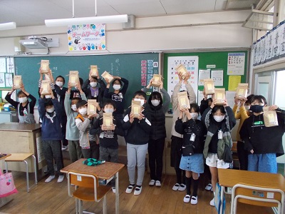 5年生の子どもたちにおいしいお米が届きました。
