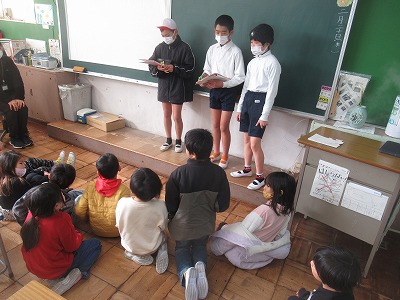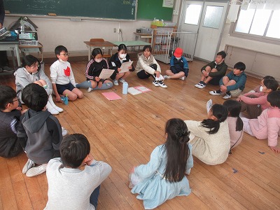 毎週木曜日は、縦割り班での「なかよしタイム」です。今日は、前回の活動反省と次回の計画です。5年生が中心の進行も少しずつ慣れてきて、みんなに伝わるように言えたり、まとめたりしています。みんなの考えや意見をまとめるのは大変ですが、大切な役割です。次の活動も楽しめるよう、よろしくお願いします。
