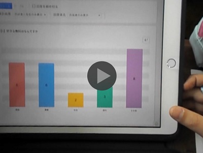 ロイロノートを使いアンケートを実施することで、アンケートの集計を自動で行うことができます。動画で紹介した児童は「好きな教科」や「嫌いな教科」などについてアンケートを実施していました。