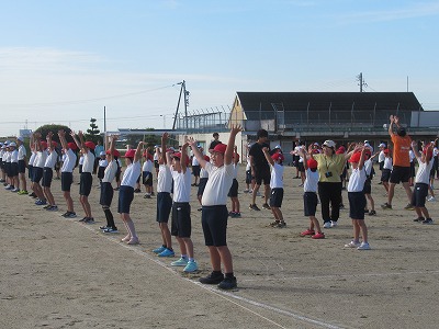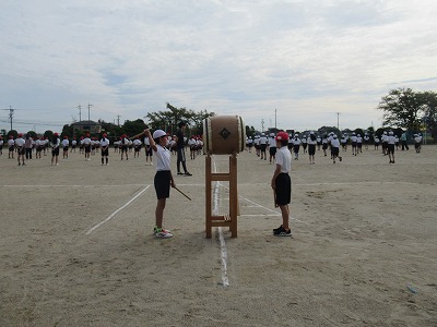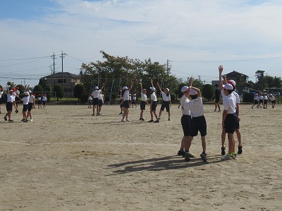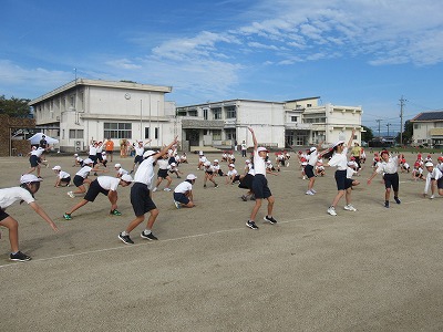 運動会に向けて、全校練習を行いました。1時間目は涼しい爽やかな風が通ると思ったら、雲の隙間から太陽が顔を出すと、汗ばむ陽気になってきます。少し暑さは感じますが、秋らしさを感じられる元、運動場には全校児童のやる気と全力の声が響きました。