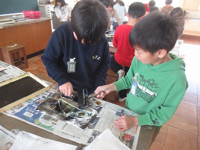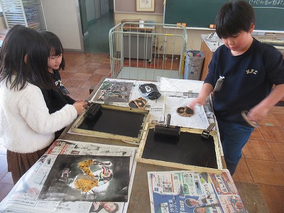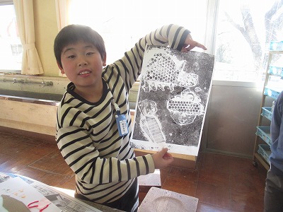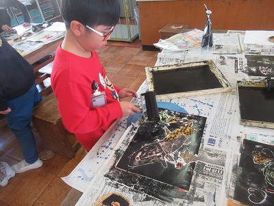 3年生は「紙はんが」に取り組みました。
