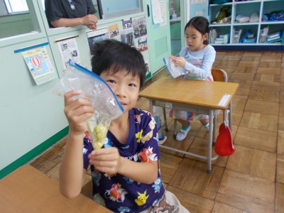 学年園で自分たちが植え、収穫した芋です。味はどうでしたか?