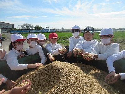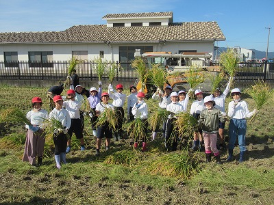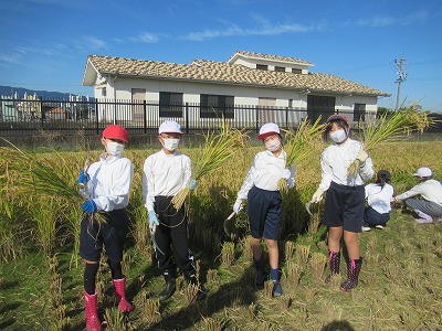 稲刈り体験は、単なる収穫作業にとどまらい、様々な学習につながります。普段食べているお米が、農家の努力や自然の恵みによって作られていることを実感し、地域の農業文化についても学ぶことできたと思います。貴重な体験をさせていただき、ありがとうございました。また、立田広域委員会からは、「おはぎ」の提供をいただき、給食時においしくいただきました。