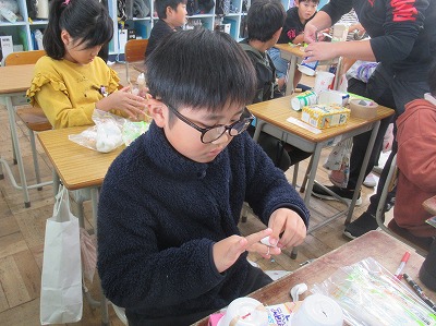 形作った上に、紙ねんどを貼り付けています。みんな熱心に取り組んでいます。完成が楽しみですね♪
