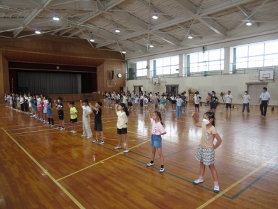 4・5・6年生が、応援合戦の練習を行いました。応援団員がリードをして、とてつもない大声が天井や壁に跳ね返って、声のパワーが感じられました。高学年の態度が、全校によい影響を与え、とても盛り上がる、すてきな運動会になると感じられました。
