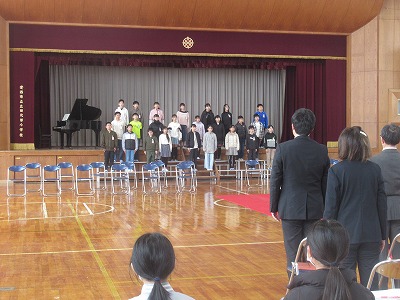 来週に迫ってきました卒業式。今日は、総練習を行いました。総練習では、在校生の代表として5年生が参加しました。