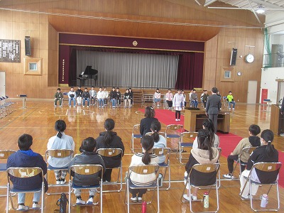 6年生は「学校をたのむよ!新しい1年生を迎えて、よろしくね!」という気持ちを込めて、5年生は「卒業される先輩の姿を見て、自分が来年あの立場でやるのか、いよいよ最高学年としての自覚を…」という気持ちを抱いて総練習に取り組めたようでした。