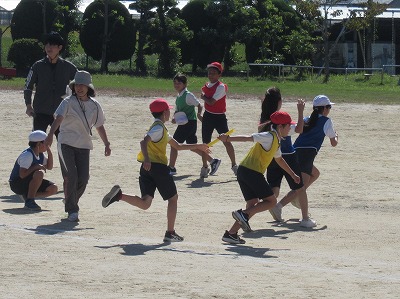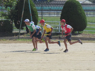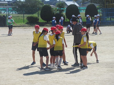 各チームが作戦を立て、バトンパス練習をして、力を合わせて頑張っています。