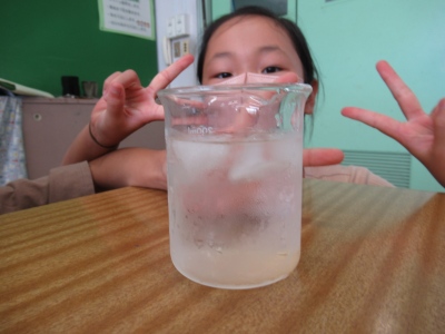 今日は、「空気中にある水」を探しました。コップに氷水を入れて置いておくと…、コップに水滴がつきました。この水滴はどこから来たのかな??