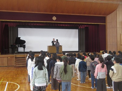 校長先生より、1年間がんばったことのお話と、健康・安全に気を付けて過ごし、4月に元気な姿を見せてくださいとお話がありました。