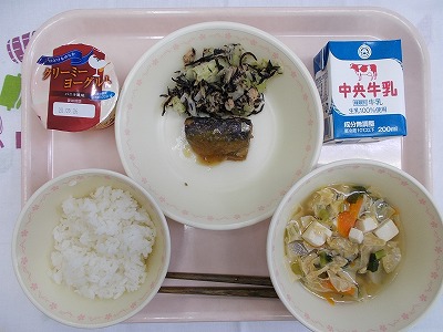 ごはん 牛乳 さんまのみぞれ煮 ひじきサラダ 湯葉のすまし汁