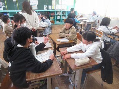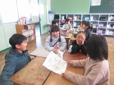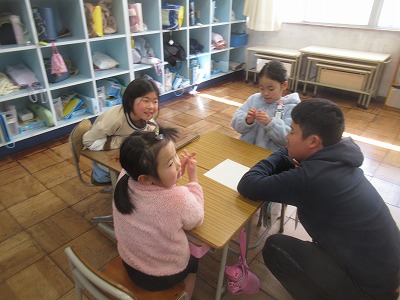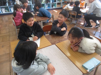 子どもたちは、ポイント「あいさつ」「うなずき」「相手を見て」等をつかみ、やり方も慣れて進めることができるようになりました。今日のお題『どっちが好き?』では、どうして好きなのかも、フリートークを交えて相手に伝えあう様子が見られました。来年度も継続してハッピータイムを設け、より内容もグレードアップして、コミュニケーション能力向上を図っていきます。