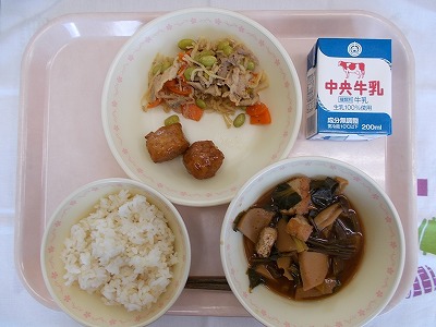 ロウカット玄米ごはん 牛乳 愛知のれんこん入りつくね