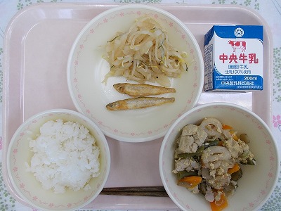 ごはん 牛乳 高野豆腐の玉子とじ ワカサギのから揚げ