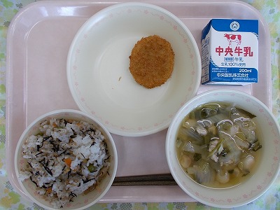 ひじきのまぜごはん 牛乳 枝豆コロッケ