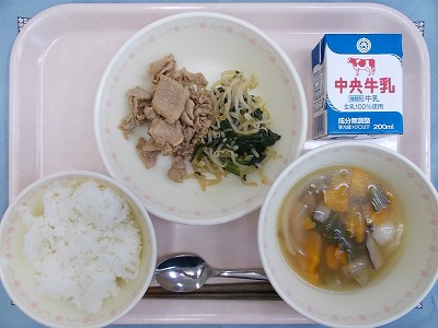 ビビンパ(肉炒め・ナムル) 牛乳 ワンタンスープ