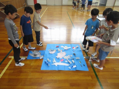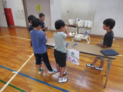2年生は、生活科の学習で、『おもちゃランド』のお祭りリハーサルをしていました。