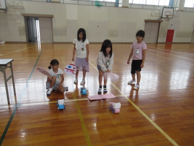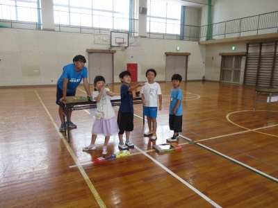 1年生を招いての本番は、お祭りのようにしたい!楽しいランドにしたい!と、子どもたちは、実際にお店の運営を考えてやってみていました。説明係、競技見本係、測定係?などと、役割分担しました。
