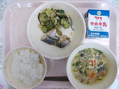 ごはん 牛乳 さわらのねぎ塩焼き 即席漬け かき玉汁