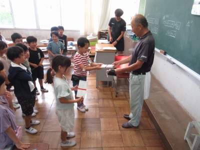 これまで、たくさん収穫できたのもボランティアさんが土日や夏休みにいろいろしていただいたおかげですね。今日はみんなで感謝の気持ちを伝えることができました。