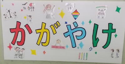 下は6年生の子どもたちが作成してくれている、運動会の横断幕です。完成に近づいてきました。