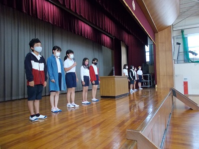 本日、後期学級役員認証式と児童会引継ぎ式を行いました。