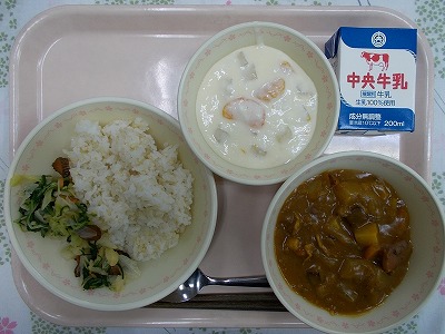 野菜入りカレーライス(ロウカット玄米ごはん) 牛乳