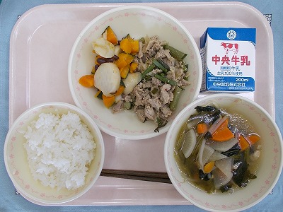 スタミナ丼 牛乳 いとこ煮 春雨のうま味汁