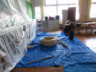 昨日から、特別支援の教室と音楽室にエアコン設置工事が始まりました。工事車両や作業員の方々が校内に入り、作業を進めていただいています。
