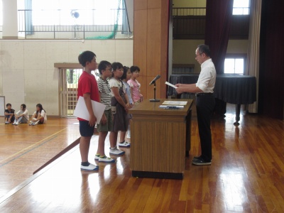 夏休みに自由研究を熱心にまとめ、理科作品展で立派な成績を修めた児童の表彰も行われました。