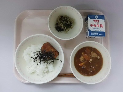 今日はセレクト給食の日。カツか鶏の天ぷらどちらかをセレクトし、ご飯にのせていただきました。今日もおいしくいただきました。