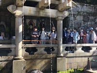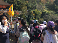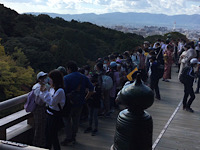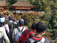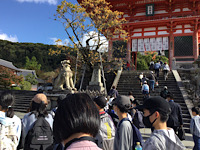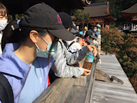 修学旅行、最後の訪問地の清水寺です。紅葉も始まり清水の舞台から眺める景色を子どもたちは楽しみました。音羽の滝にも並び、学業、恋愛、長寿の3つから自分が叶えたい希望のある滝の水を口にしました。