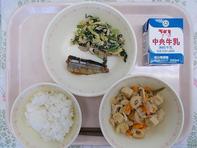 ごはん 牛乳 さんまの煮つけ 高野豆腐のふくめ煮