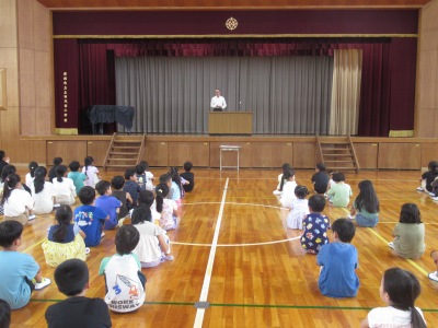 振り返り、今後も引き続き心にとめていきましょう。また、夏休みに向け、自分のためになる充実した時間にしていくために、これまでの経験をいかして元気に安全にすごすよう話がありました。