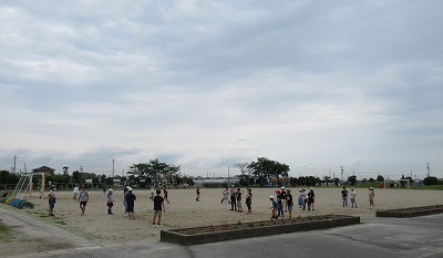 朝からどんより天気、運動場も少しぬかるんでいました。