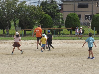 今日は、曇り空で風もあり、熱中症指数が高くなりすぎていないので、休み時間は久しぶりに外で遊ぶことができました。元気に走り回ったり、ボール遊び、遊具遊びで楽しく過ごすことができました。