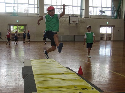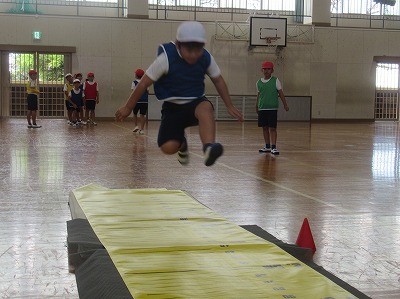 「目線をしっかり上げると身体が上がるよ!」「踏み切りに足が合わせられるように練習しよう!」「記録が上がったよ!やったね!」と、掛け合いの声も活発に取り組んでいました。